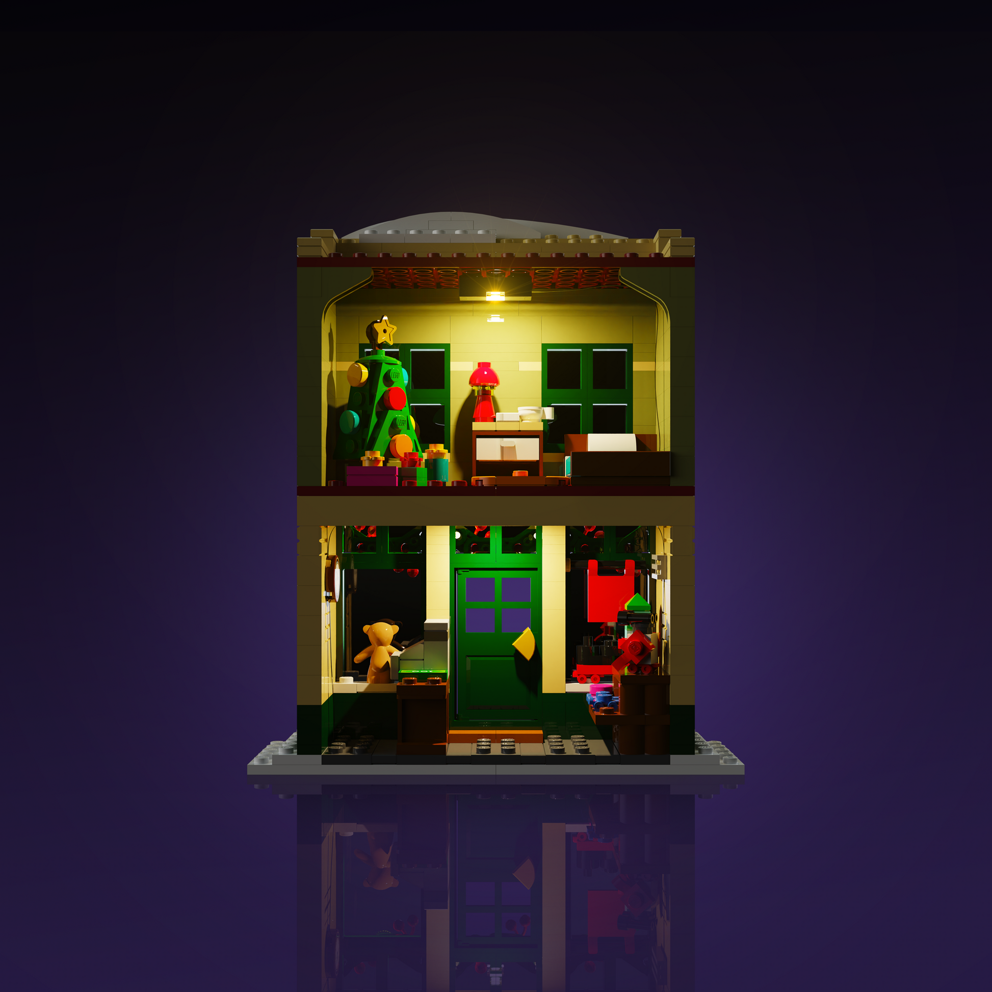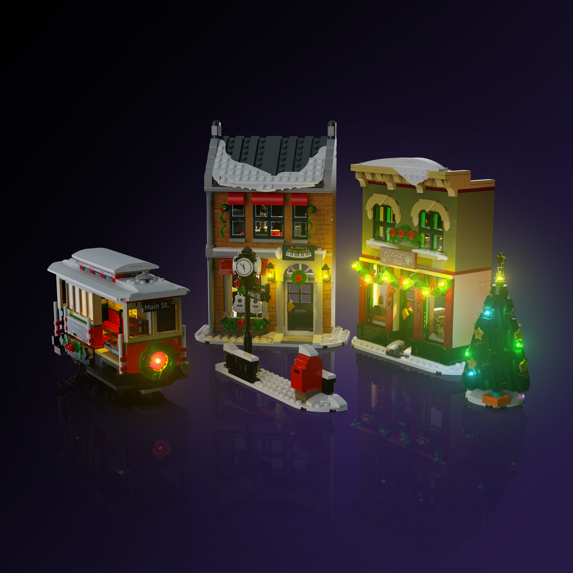 Illuminate both the toy shop and music shop with warm, inviting lights using Micro Meteor LEDs on every floor. The shopfronts come to life with Astro Warm White lights on the toy shops exterior and charming lanterns on the music shop. Add a magical glow to the Christmas tree with multi-coloured LEDs for a real festive touch. The tram shines too, featuring realistic front and rear lights, plus a cozy interior glow for your minifigures ride.