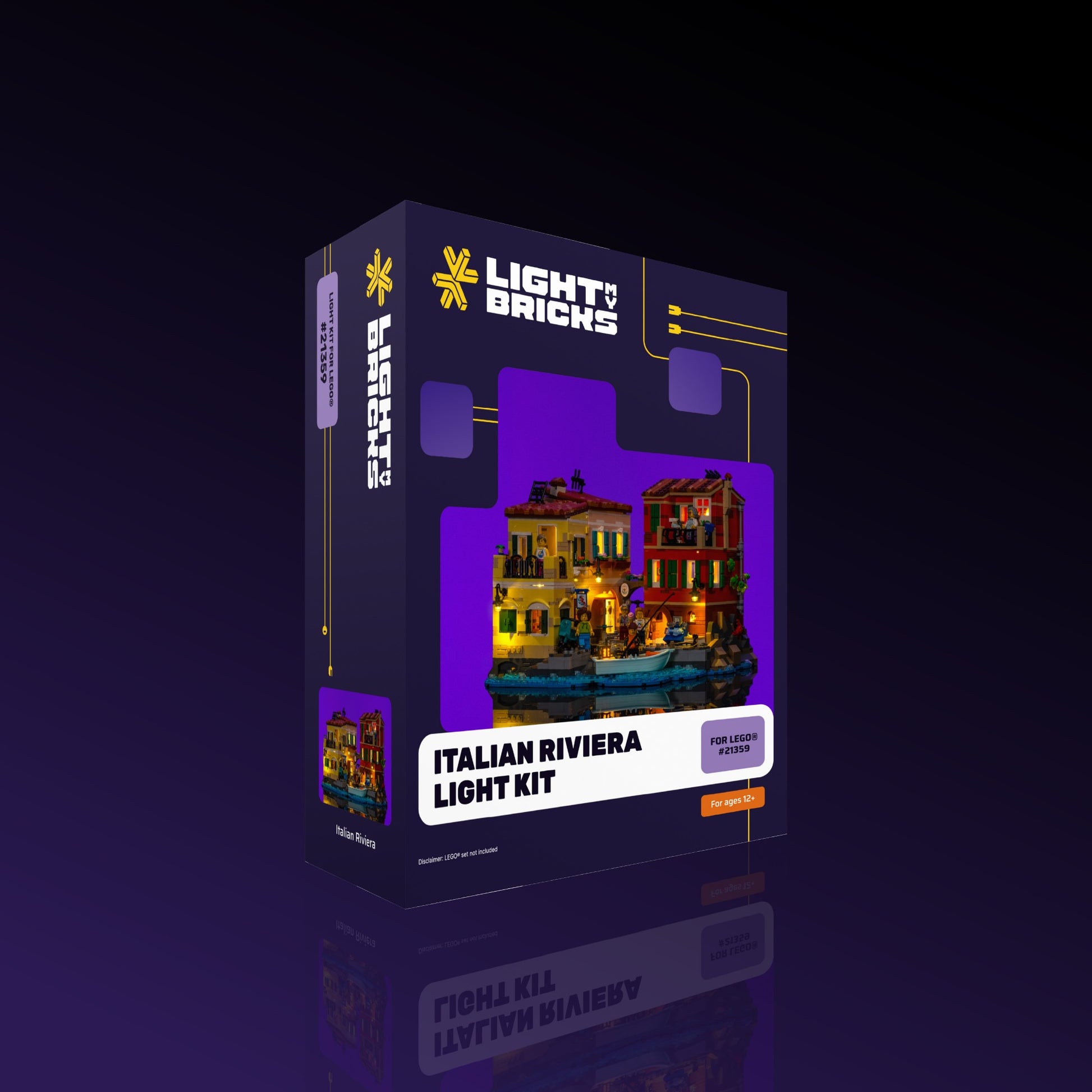 Bring the charm of the Mediterranean coast to your display with a warm and inviting Light My Bricks™ Light Kit for the LEGO® Ideas Italian Riviera 21359. Inspired by the real seaside towns, the interiors glow with soft warm white lighting—from subtle downlights to cosy lamps—while the exterior shines with golden-hued streetlamps, including an added front fixture for perfect balance. A yellow spotlight highlights the rear staircase, making this a stunning 360° viewable model, and a gently flickering lantern aboard the fishing boat completes the tranquil coastal scene. With fully functional removable sections thanks to Flux Touch Plates, this light kit captures the romance and vibrancy of the Italian Riviera in brick form.