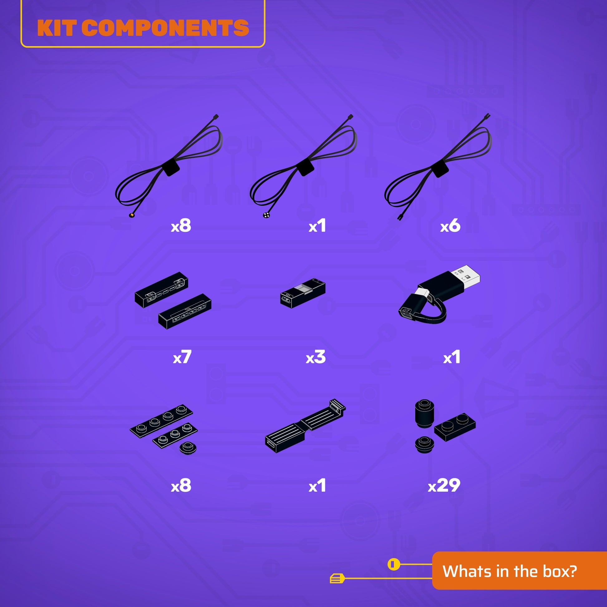 • All component casing and housing has been designed to connect seamlessly onto the LEGO stud system, with LEGO dimensional parts.