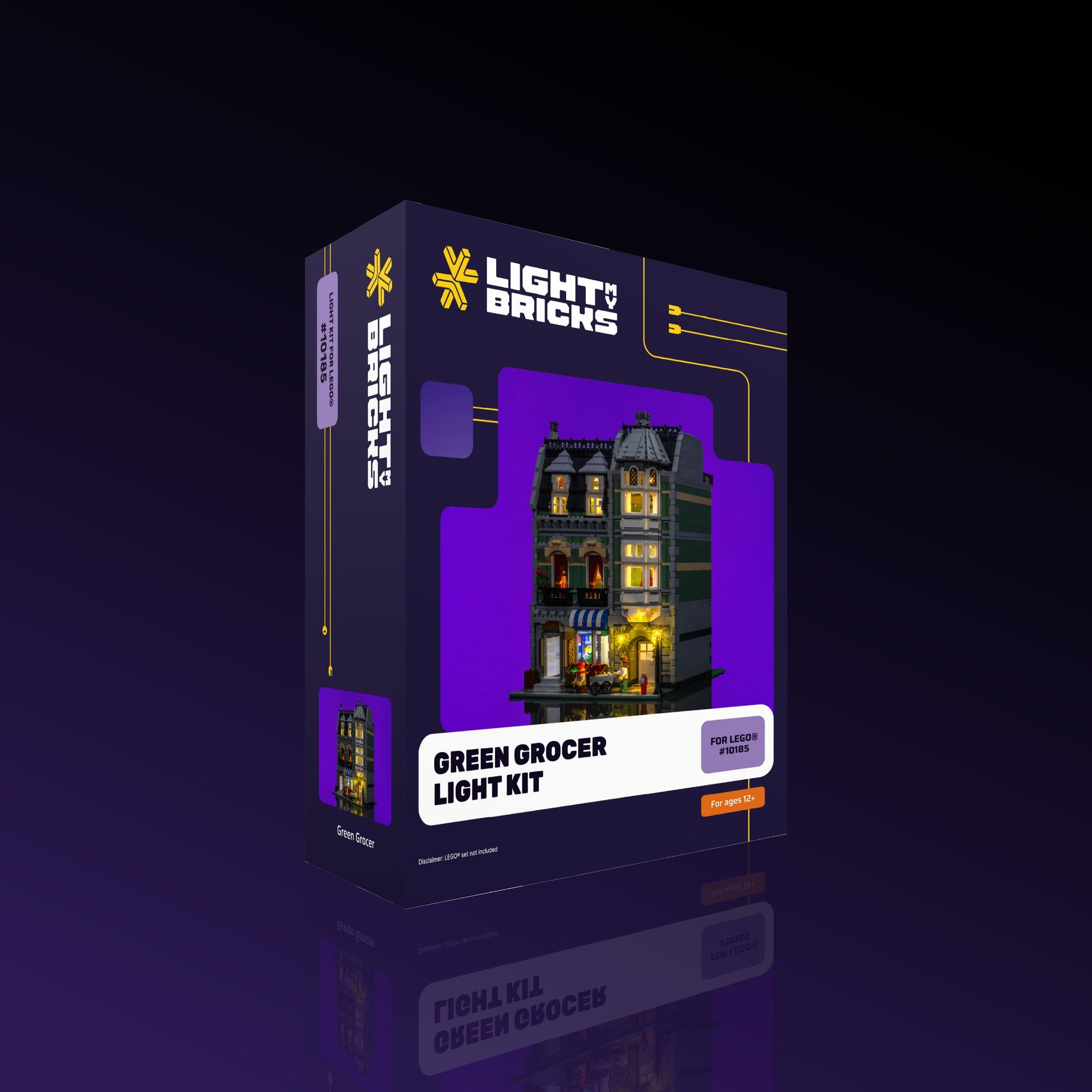 Bring classic modular charm to life with a custom Light My Bricks™ Light Kit for the LEGO® Creator Expert Green Grocer 10185. A glowing custom lamp post brightens the street and building façade, while cool white lights inside the produce and drink fridge give the grocery store a crisp, fresh look. Warm white downlights fill the upstairs apartments with a cosy glow, complemented by a gently flickering fireplace for added homeliness. With balanced lighting from street to rooftop, this kit transforms the Green Grocer into a beautifully illuminated centrepiece for your LEGO® modular collection.