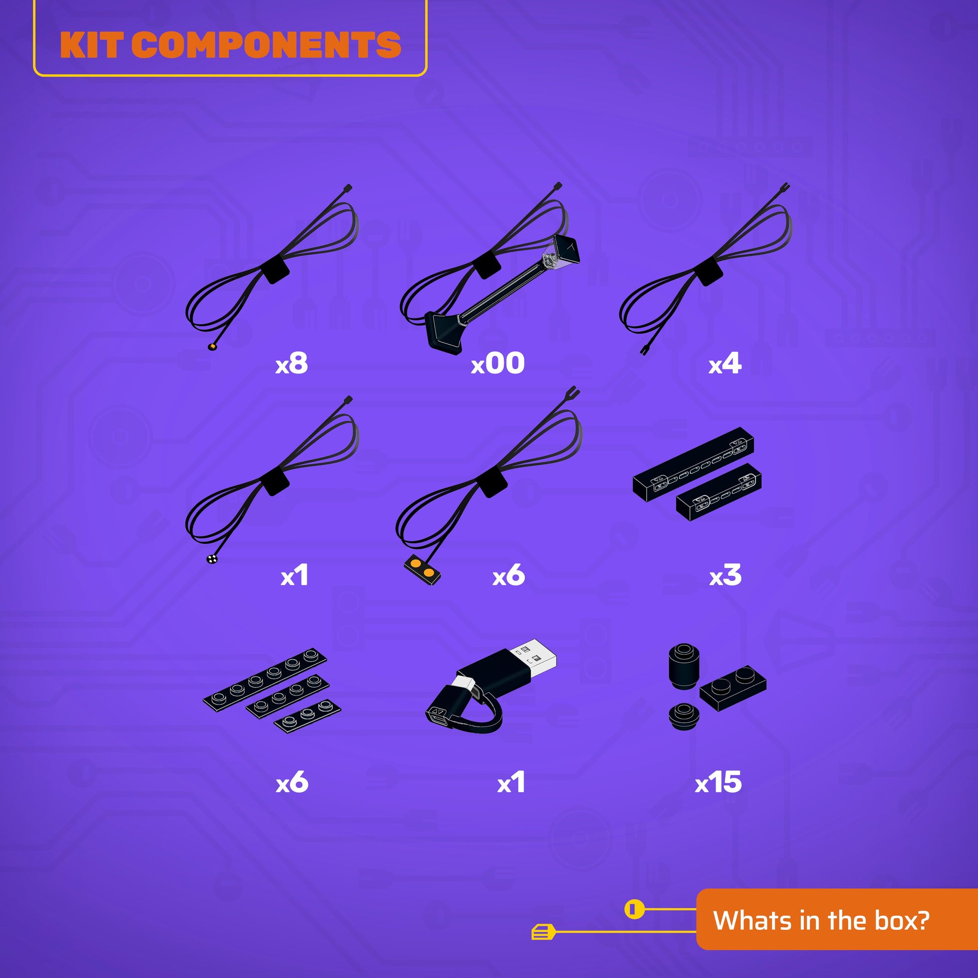 • All component casing and housing has been designed to connect seamlessly onto the LEGO stud system, with LEGO dimensional parts.