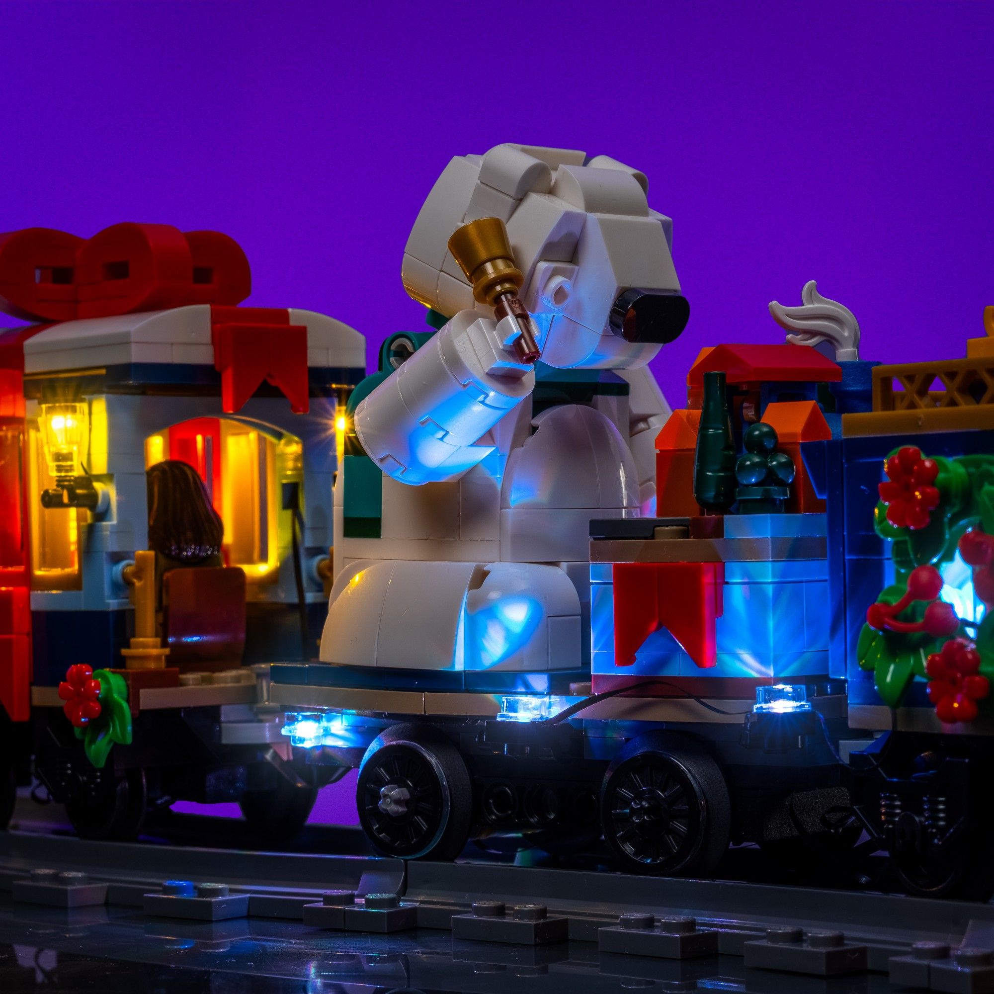 All aboard the festive spirit with a dazzling Light My Bricks™ Light Kit for the LEGO® Icons Holiday Express Train 10361! A vibrant multi-colour light string runs through the carriages, capturing the joy and warmth of the holiday season. Flickering orange and warm white LEDs bring the locomotive’s firebox, coal burner, and station lamp post to life, while glowing yellow exterior lamps add cheerful charm to the passenger carriage. With our new Powered Up Belt, you can power your lights directly from the LEGO® battery box—keeping your train running freely around the tracks without a single fixed cable.