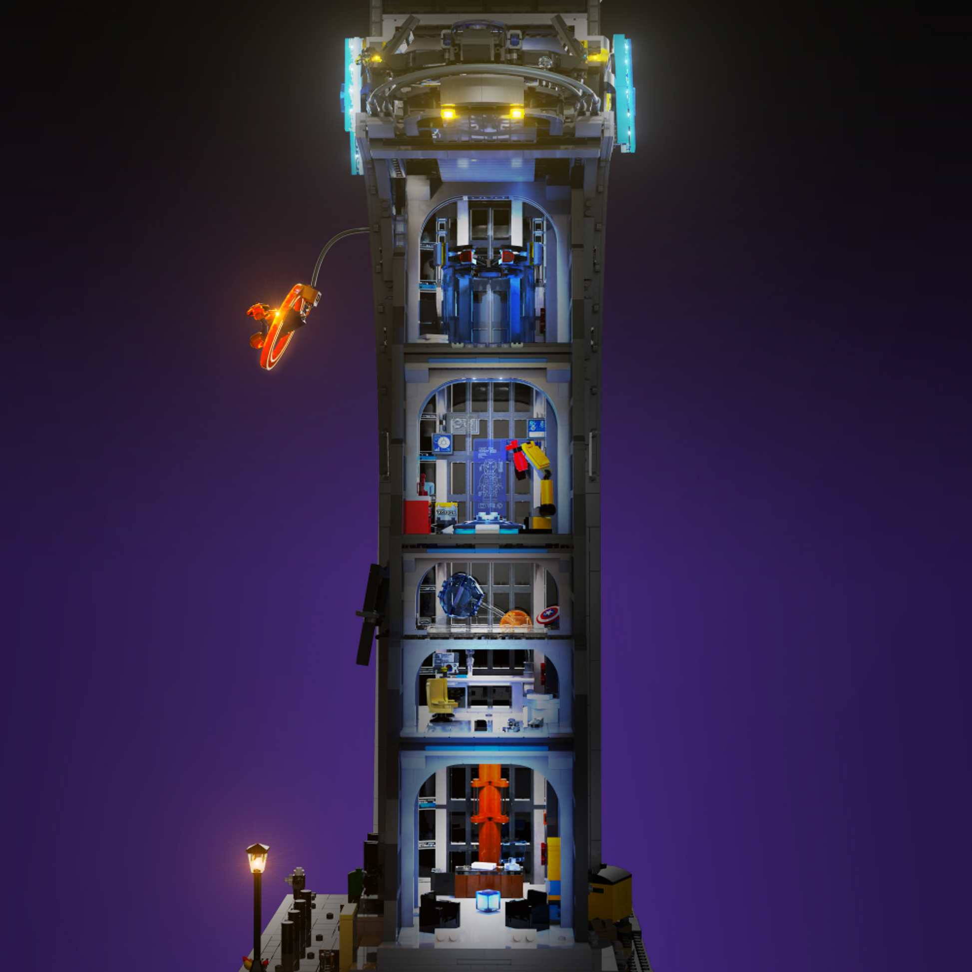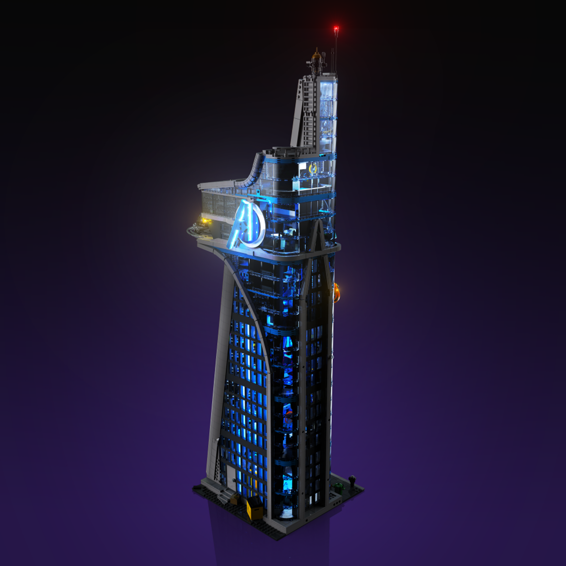 Towering over 90cm, our custom lights have been placed around the most identifiable features of the Avengers Tower that movie lovers won't be able to get enough of. From the dropped Tesseract on the ground floor, to the glowing Avengers "A", the helipad and Dr. Strange's portal, no feature has gone unlit or forgotten.
