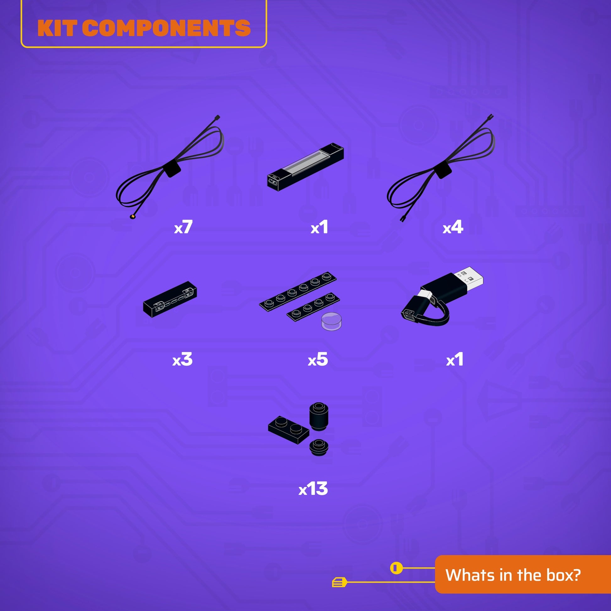 • All component casing and housing has been designed to connect seamlessly onto the LEGO stud system, with LEGO dimensional parts.