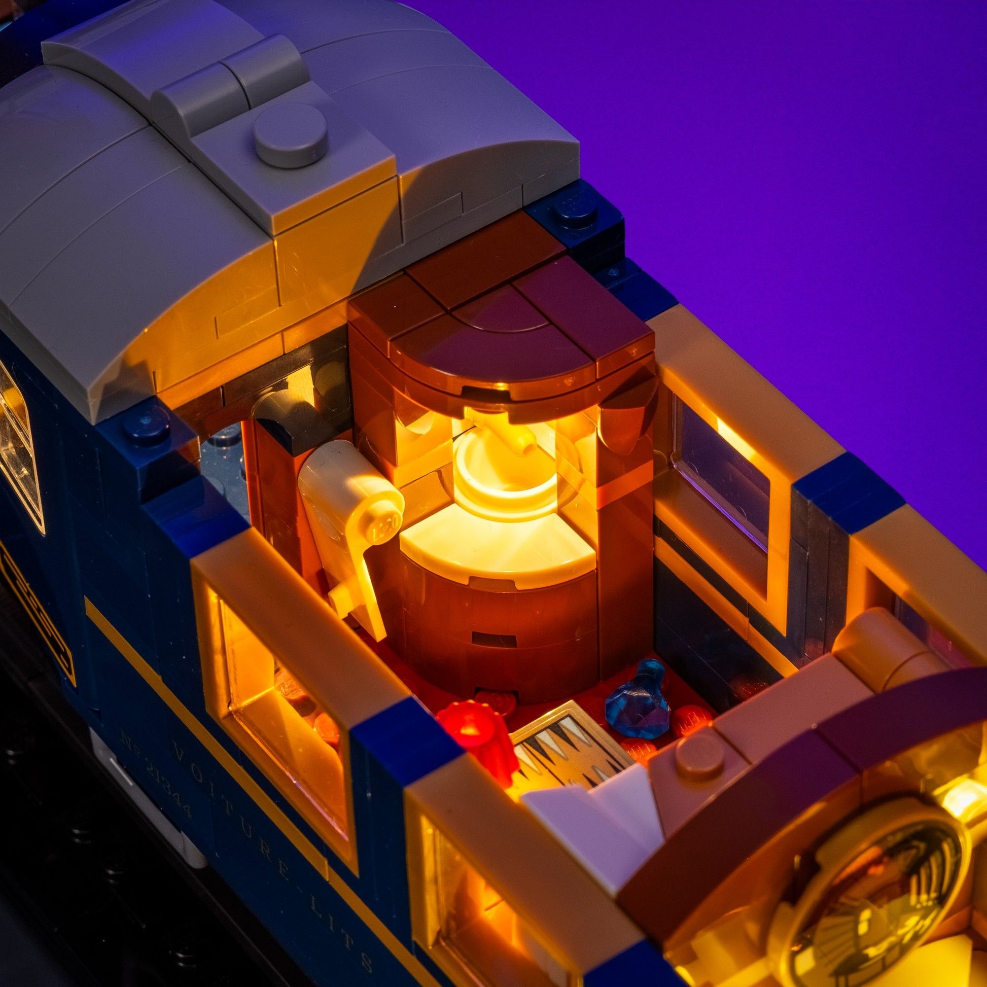 Relive the golden age of luxury travel with a custom Light My Bricks™ Light Kit for the LEGO® Ideas The Orient Express Train 21344, designed to capture the elegance and romance of the world’s most famous railway journey. Warm white headlights and a glowing lantern guide the locomotive forward, while a red-lit furnace keeps the steam engine alive with cinematic realism. Inside the carriages, table lamps, bedrooms, and bar areas glow with soft yellow and warm white lighting, creating a welcoming atmosphere for passengers on their long voyage. Finished with glowing carriage ends, track spotlights, and an authentic red tail light, this kit transforms the Orient Express into a dazzling display piece worthy of its legendary name.