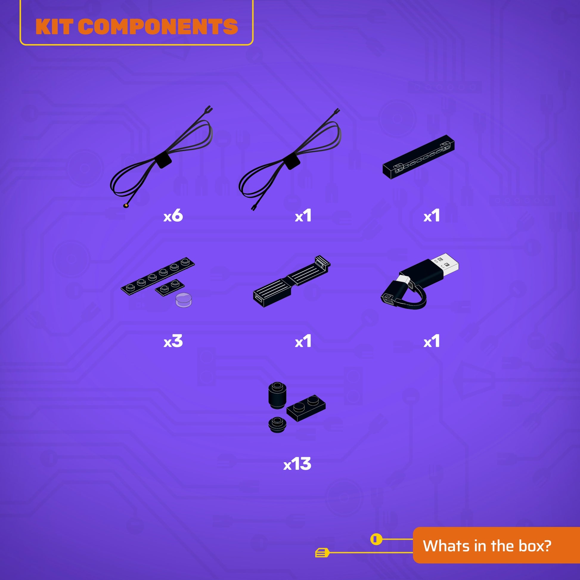 • All component casing and housing has been designed to connect seamlessly onto the LEGO stud system, with LEGO dimensional parts.