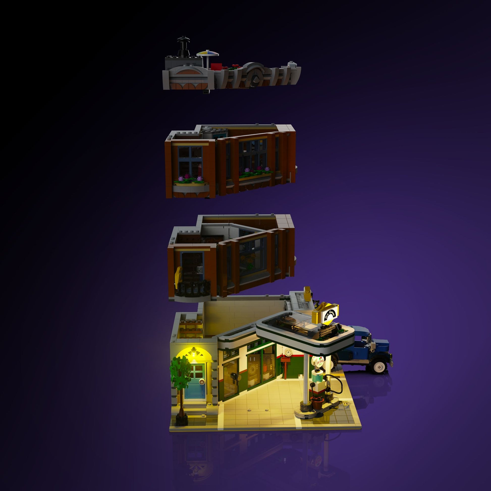 Designed to highlight every iconic feature of this amazing set, the Light My Bricks™ custom lighting kit for LEGO® Corner Garage will add a touch of brilliance to your build. Featuring wireless Flux Touch Plates so you can separate levels without cables, it ensures complete playability whilst creating a stunning illumination. You can achieve a soft, rich light with six warm Meteor Lights that flood every level.