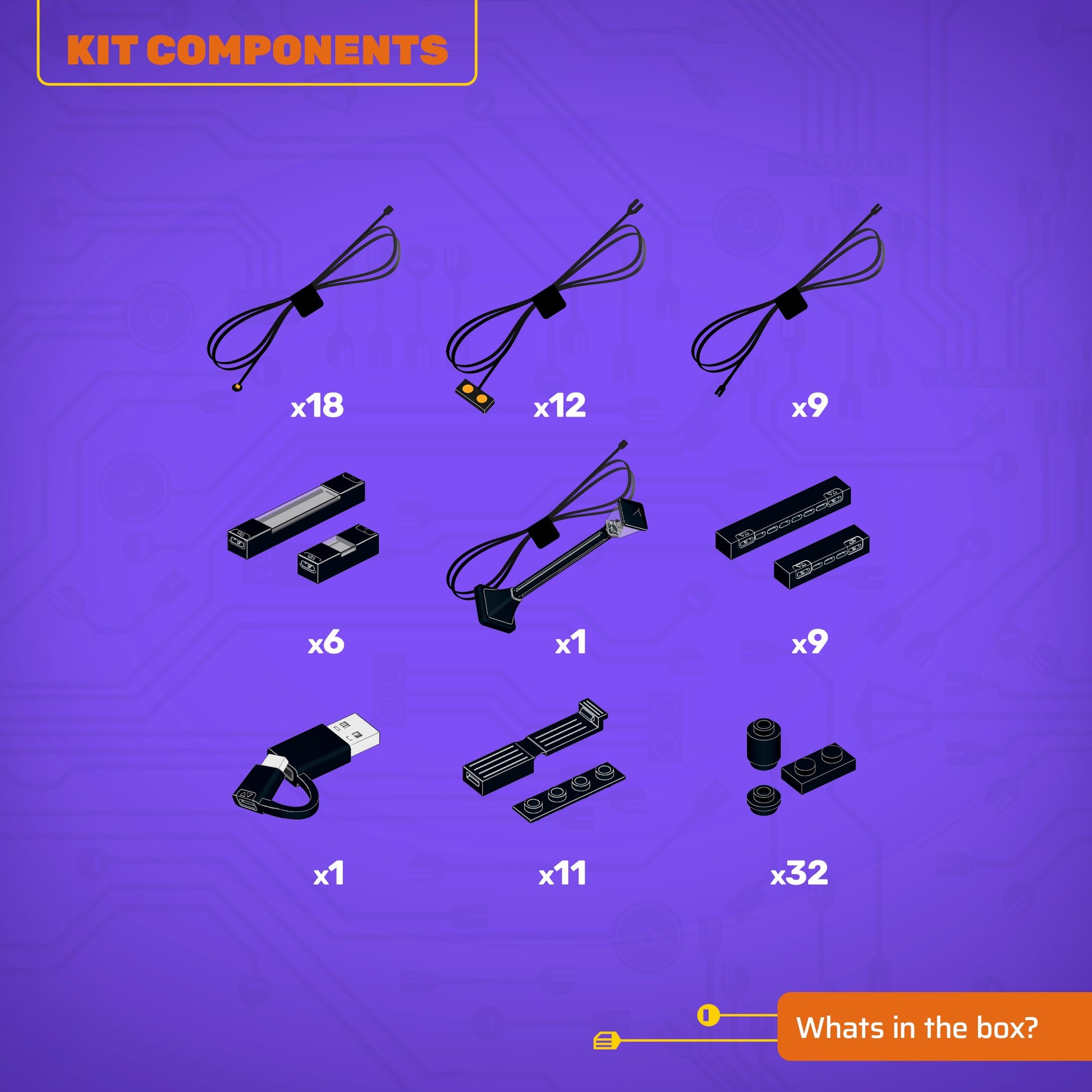 • All component casing and housing has been designed to connect seamlessly onto the LEGO stud system, with LEGO dimensional parts.