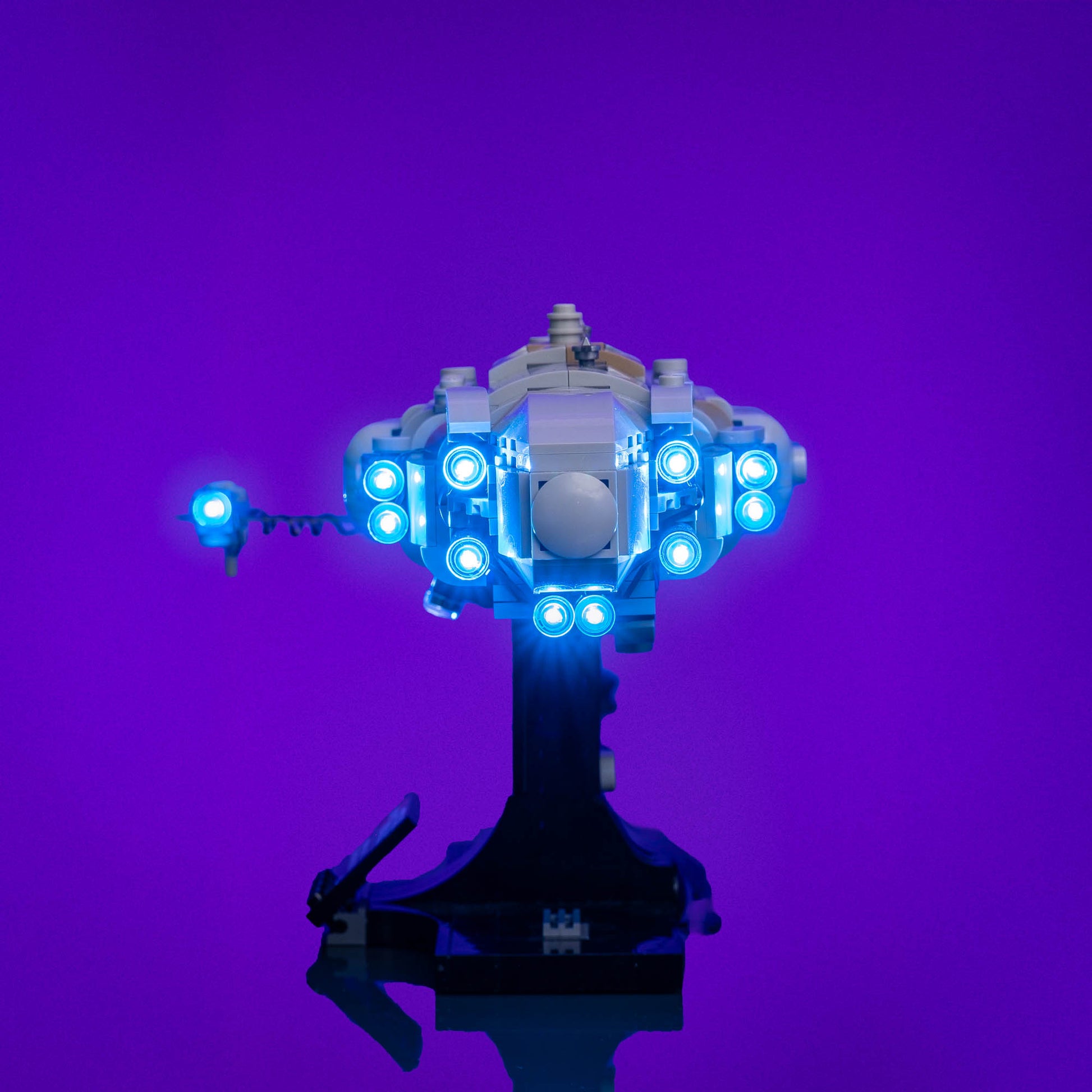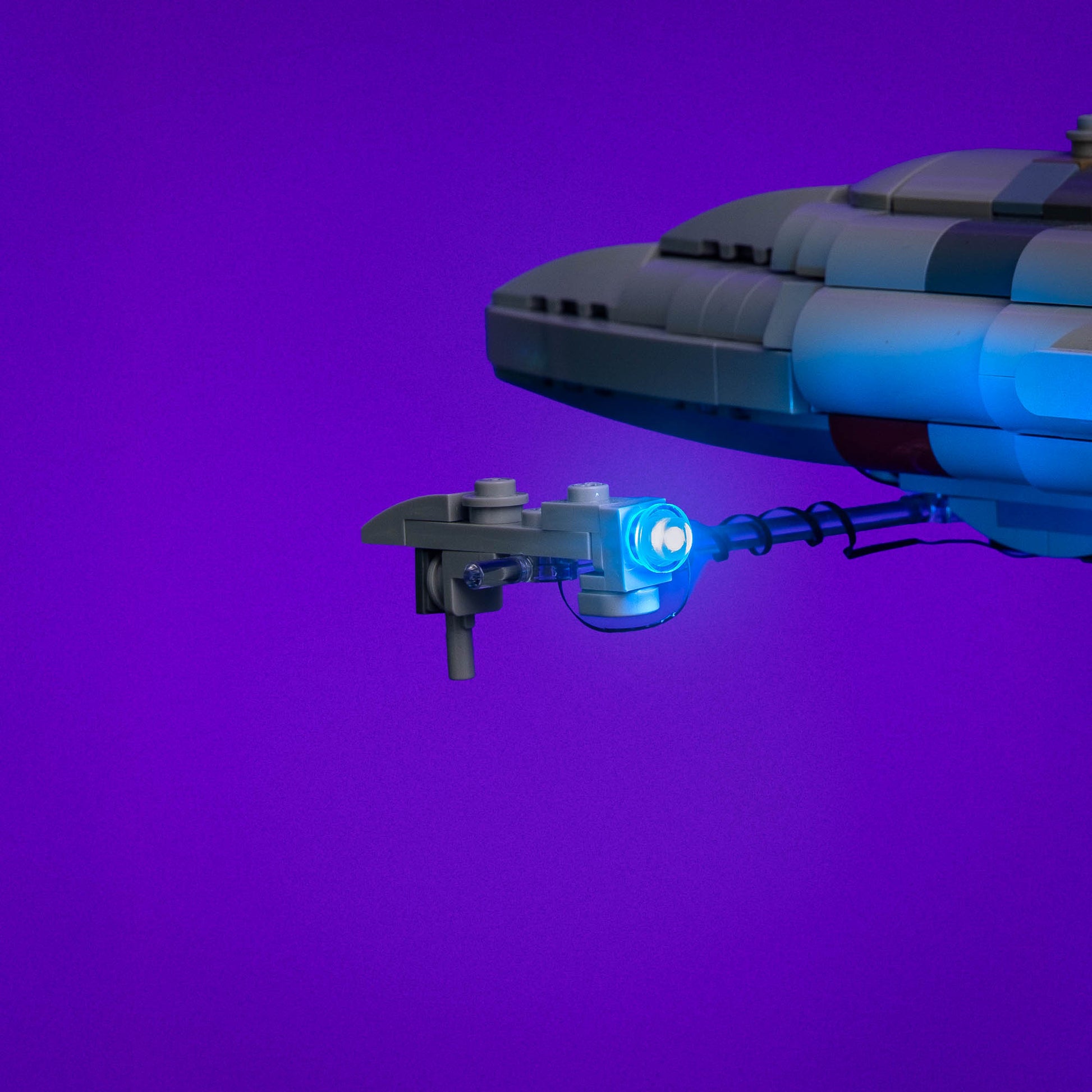 The Light My Bricks™ lighting kit for Home One and Nebulon-B Frigate will take your Star Wars™ universe to the next level! Elevate and enhance your build by highlighting all of the intricate details and giving your ship a realism that appears to 'move’ at every angle. The Home One engines are illuminated with our warm blue Astro lights, and the two ships are connected via a single blue Astro light in the Nebulon-B Frigate's engine, which creates a cohesive, glowing effect.