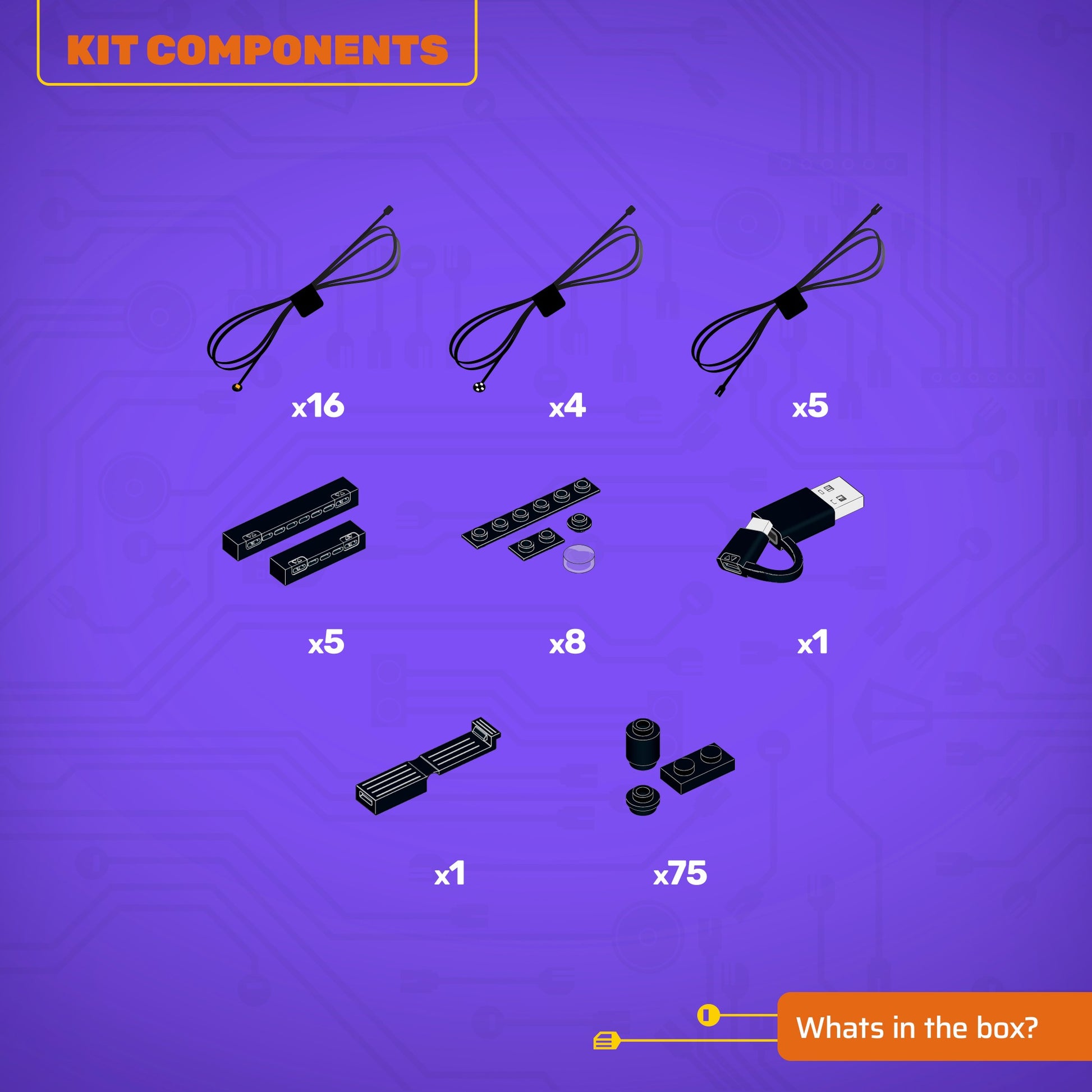 • All component casing and housing has been designed to connect seamlessly onto the LEGO stud system, with LEGO dimensional parts.