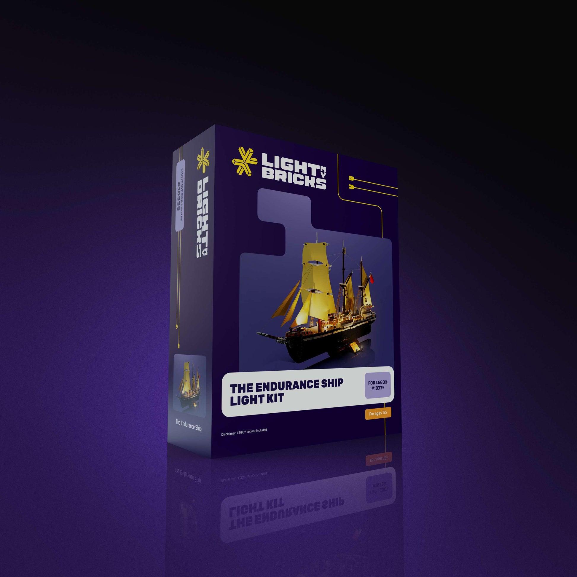 This premium Light My Bricks™ Light Up Kit is the perfect accessory to take your Endurance Ship set to the next level. Elevate your model by adding both dramatic and subtle lighting effects that highlight the finest details. The front plaque of the ship is illuminated with two large warm white Astro lights, creating a soft, welcoming glow. As you move around the ship, you'll notice seven additional warm white lights placed strategically along the bow, midship, and stern. This casts an upward light that enhances the sails and rigging while creating impressive shadow play for a more dynamic visual experience.