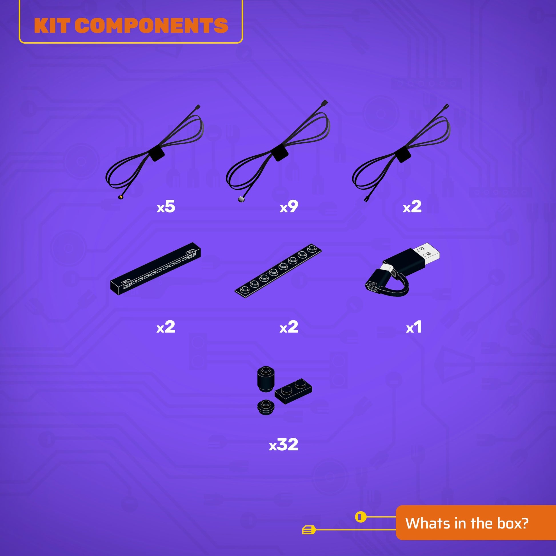 • All component casing and housing has been designed to connect seamlessly onto the LEGO stud system, with LEGO dimensional parts.