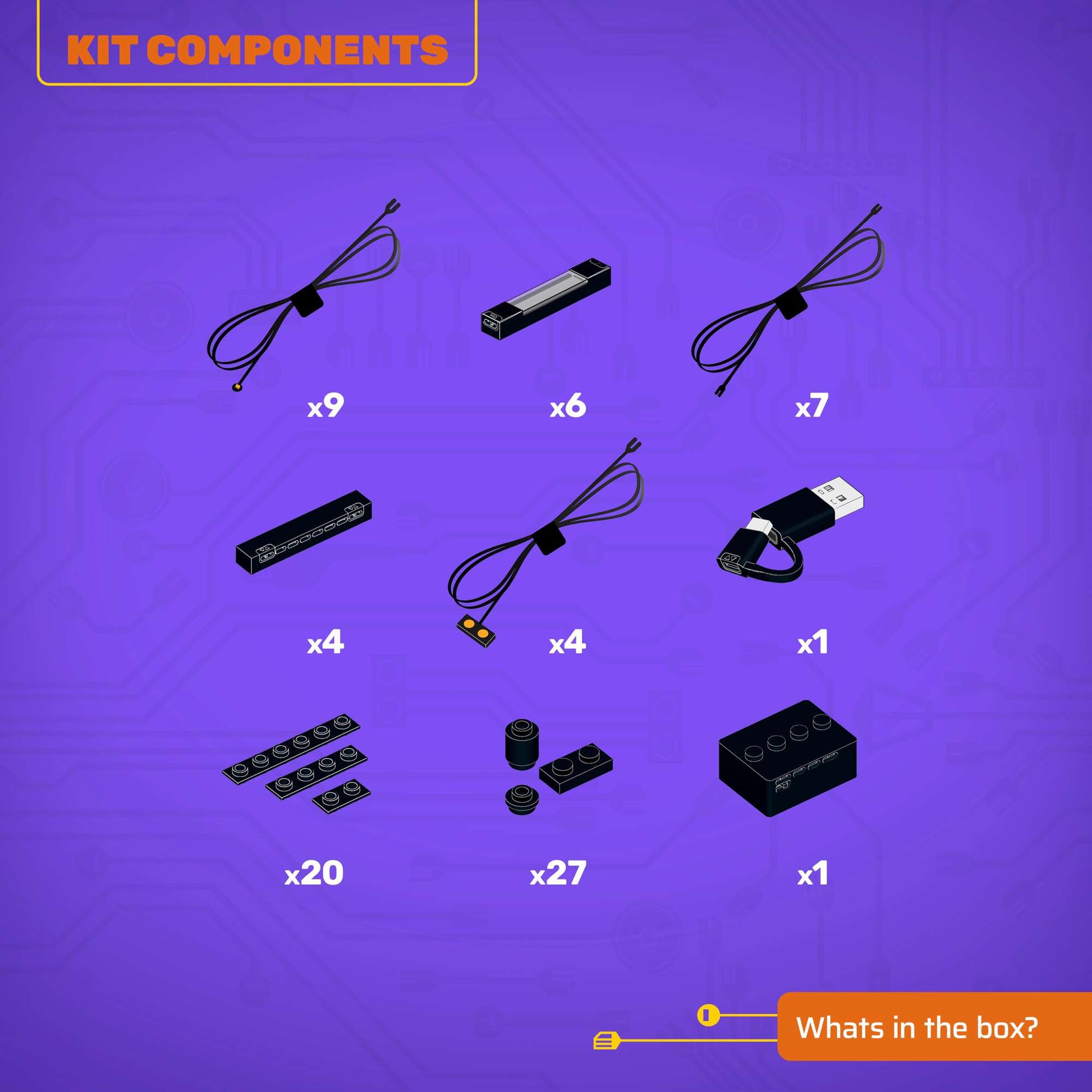 • All component casing and housing has been designed to connect seamlessly onto the LEGO stud system, with LEGO dimensional parts.