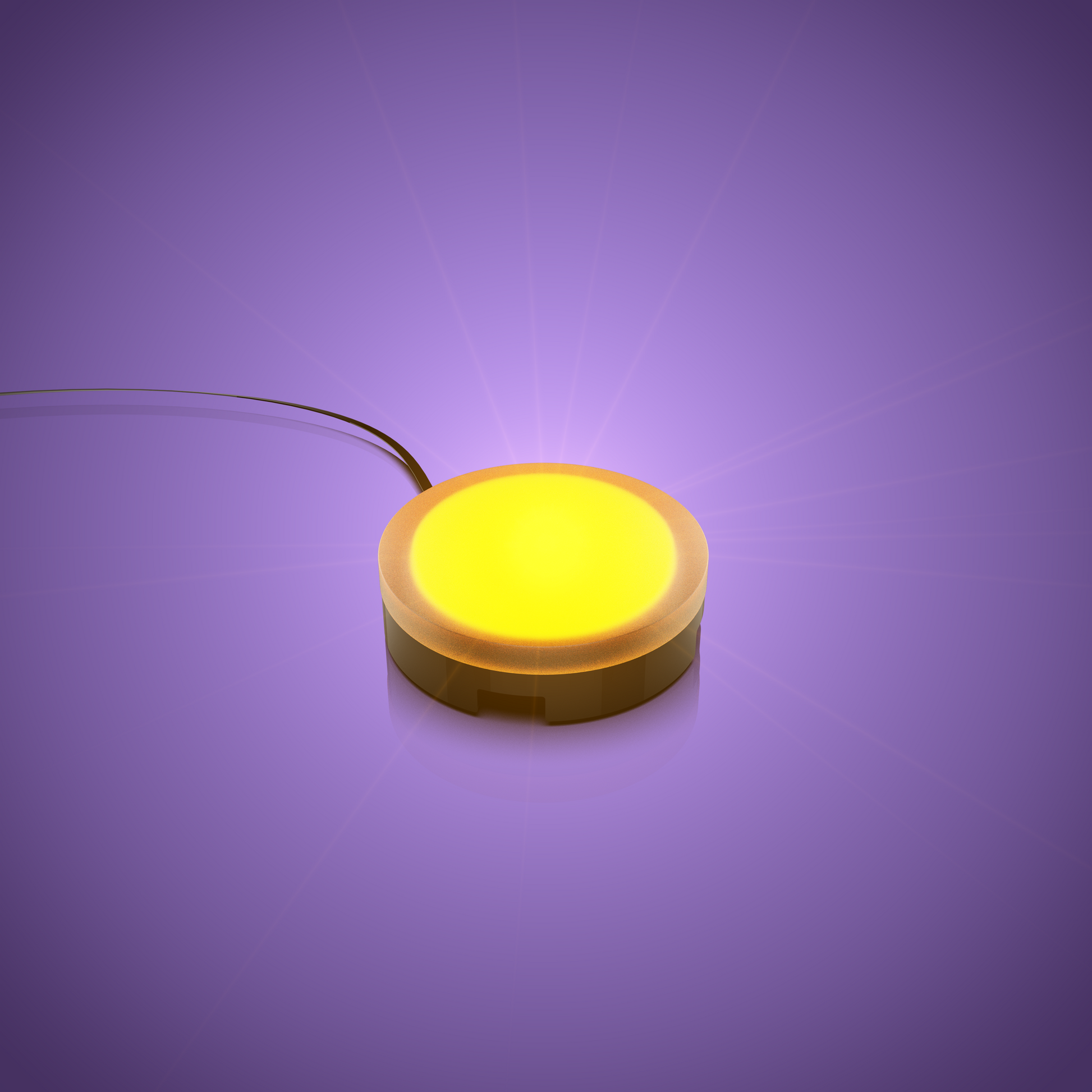 Introducing the Solar Light (Orange) - the ultimate spotlight for your LEGO creations! This large, circular light is powered by 12 LEDs and is covered with a frost Orange solar cap, making it perfect for use as a powerful headlight or engine booster. With versatile connection options, the Solar Light can snap onto 1x1 or 3x3 stud patterns or attach to the underside of plates with our Tether system. This light is also available in a range of other colours, including Cool White, Warm White and Blue. Our Solar Light is 23.8 x 6mm and comes in a pack of 2.